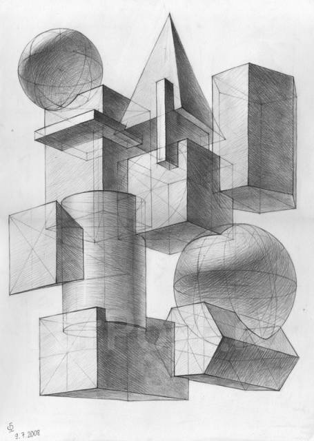 Kompoziciya Iz Geometricheskih Tel Risunok Po Predstavleniyu Obzor Arhitekturnyj Risunok Kursy Ne Vstavaya S Divana Geometricheskie Figury Kompoziciya Risunki