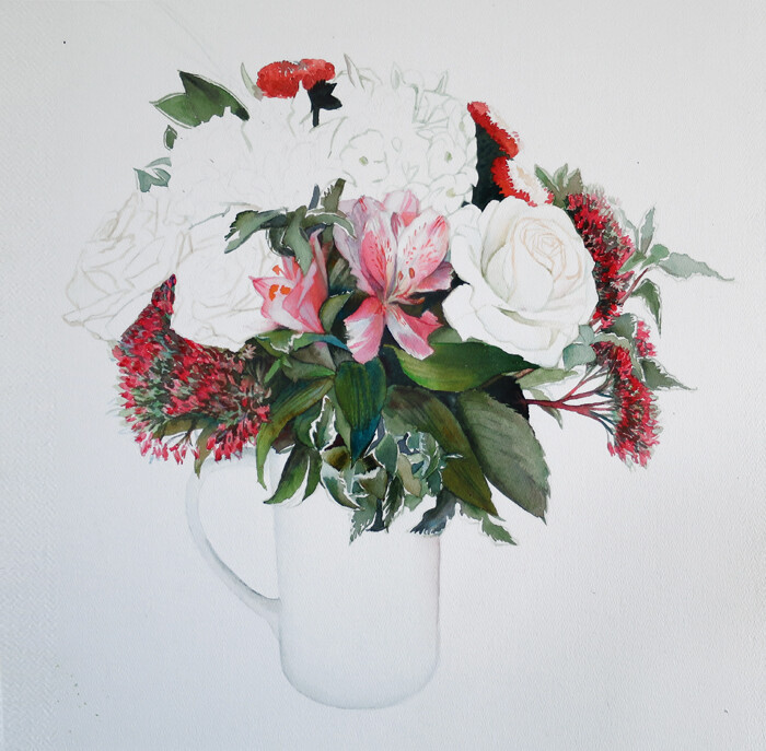 букет цветов рисунок акварелью