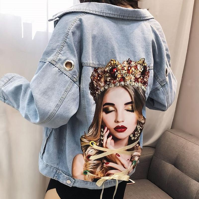Zhenskaya Korotkaya Dzhinsovaya Kurtka S Risunkom Na Spine Queen 830 Grn Kurtki Zhenskie Kidstaff 21633883