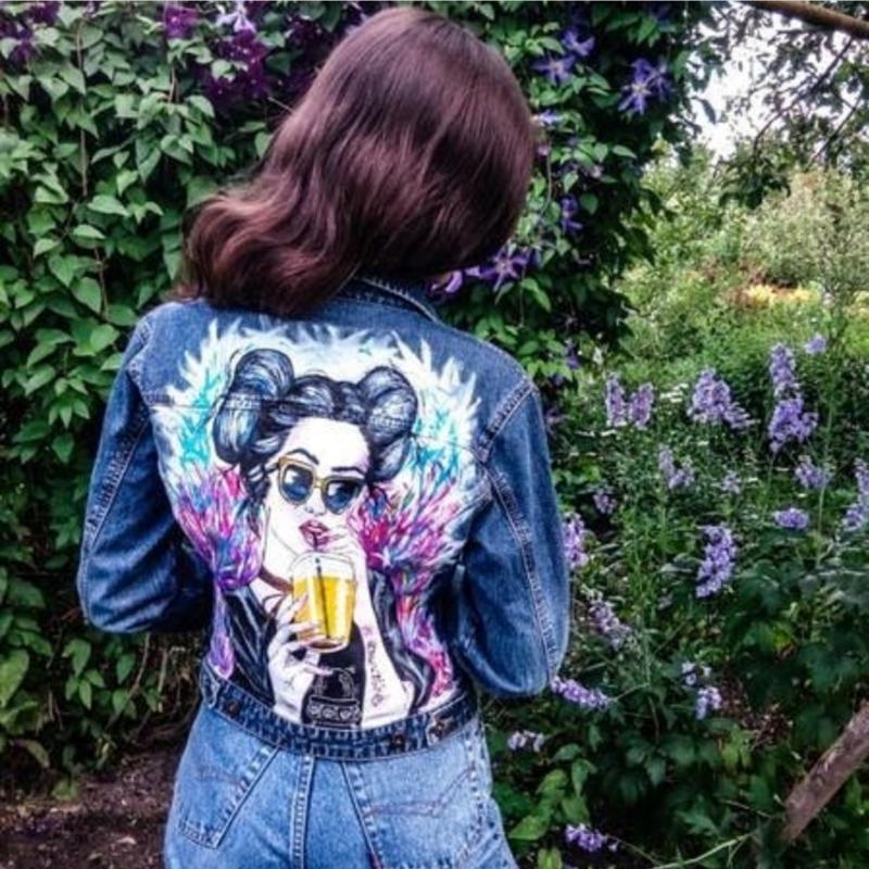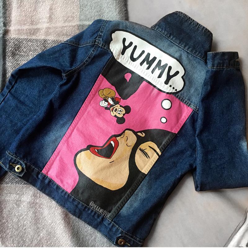 Dzhinsovaya Kurtka S Risunkom Pop Art Ruchnaya Rospis Zakazat Na Yarmarke Masterov Cq083ru Kurtki Moskva