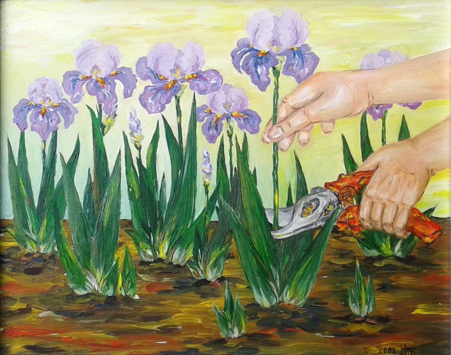 Arhiv Kartina Maslom Cvety Irisy V Sadu 2 200 Grn Zhivopis Zaporozhe Na Olx
