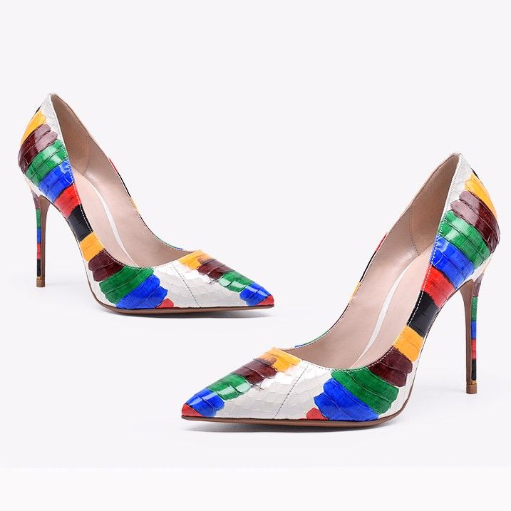 Zhenskie Tufli Na Kablukah S Ostrym Nosom I Zmeinym Risunkom Na Shpilke Chic Plyus Razmer Python Milanoo Com Ru