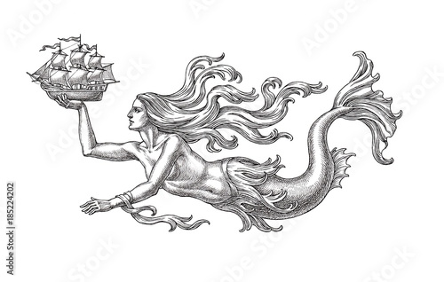 Rusalka Nesushaya Parusnyj Korablik Allegoriya Morya Risunok Tushyu Na Belom Fone Buy This Stock Illustration And Explore Similar Illustrations At Adobe Stock Adobe Stock