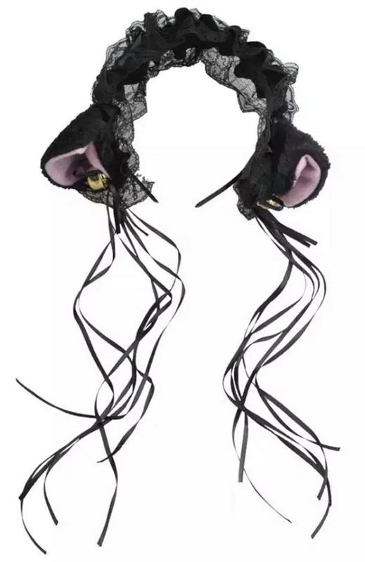 Zhenskaya Kruzhevnaya Povyazka Na Golovu S Oborkami Plyushevye Koshachi Ushki Kolokolchik S Lentoj Lolita Kosplej Obruch Dlya Volos Aliexpress