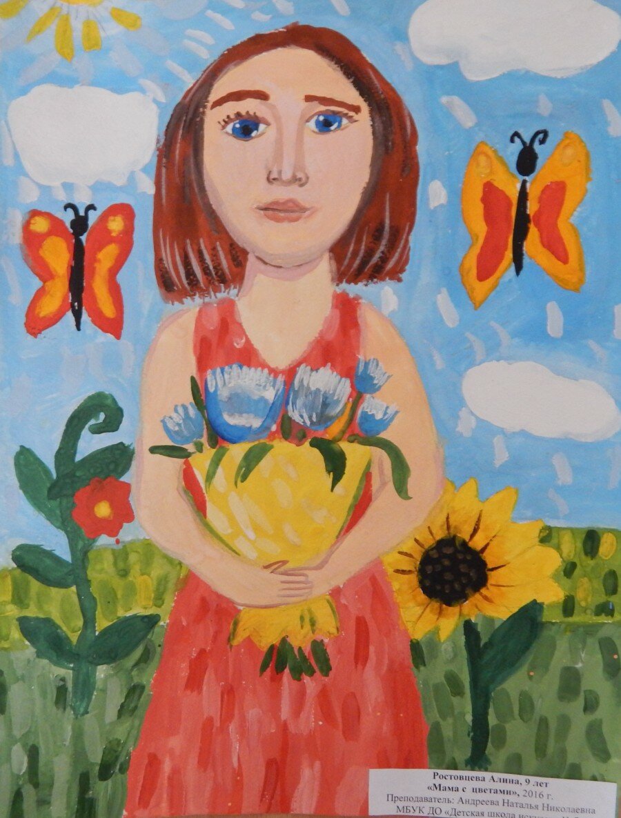 Detskij Risunok Na Temu Buket Cvetov Dlya Mamy