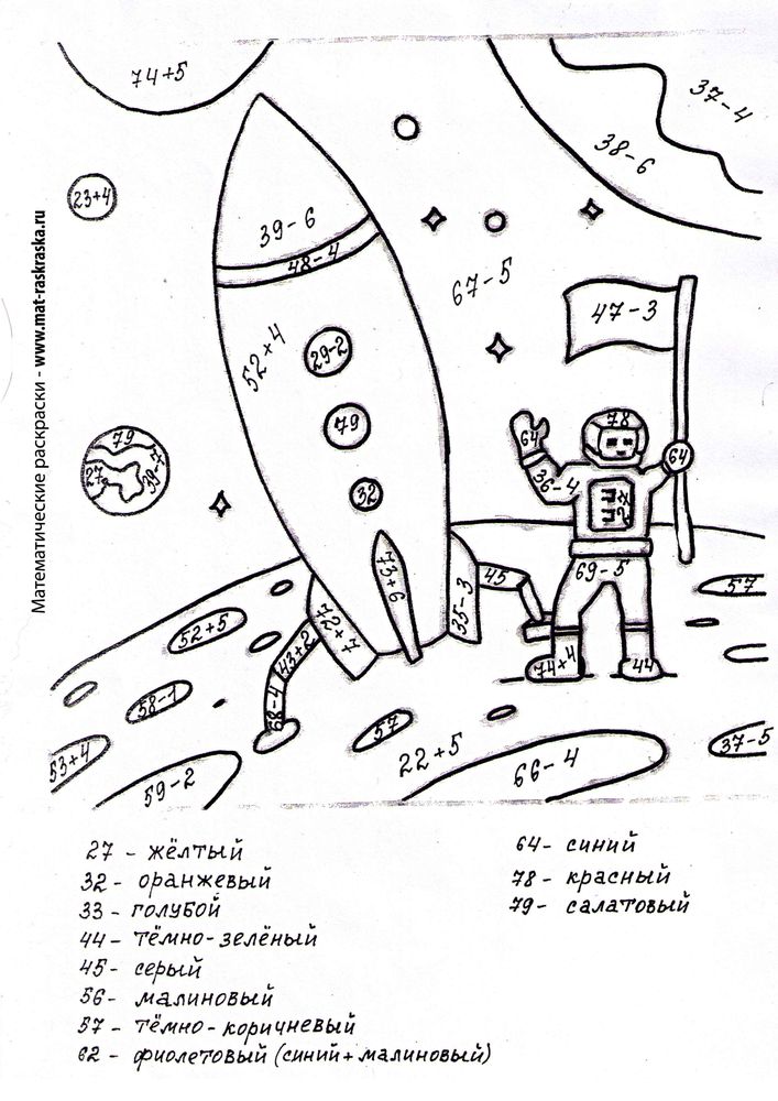 Razvivayushie I Matematicheskie Raskraski Slozhenie I Vychitanie Dvuznachnogo I Odnoznachnogo Chisel V Predelah 100 Kosmos Matematicheskie Raskraski