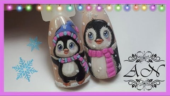Risunok Na Nogtyah Gel Lakom Milyj Pigvinchik Zimnij Dizajn Nogtej