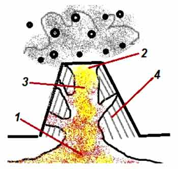 Podpishite Na Risunke 2 Chasti Vulkana 1 Ochag 2 Krater 3 Zherlo 4 Zastyvshie Sloi Lavy Univer Soloby