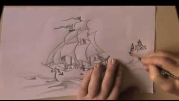 How Draw Sailing Ship Kak Narisovat Parusnik