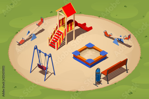 Detskaya Ploshadka Na Krugloj Pesochnoj Polyanke Sredi Travy Izometricheskij Vektornyj Risunok Acquista Questo Vettoriale Stock Ed Esplora Vettoriali Simili In Adobe Stock Adobe Stock