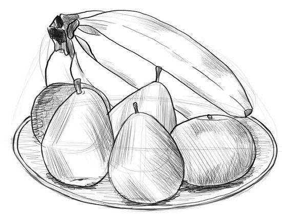 рисунок карандашом ваза с фруктами