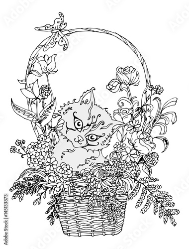 Raskraska Dlya Vzroslyh I Detej Kotenok V Korzine S Cvetami Buy This Stock Vector And Explore Similar Vectors At Adobe Stock Adobe Stock
