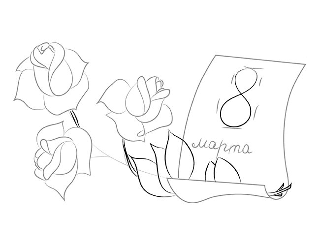 рисунок на 8 марта поэтапно