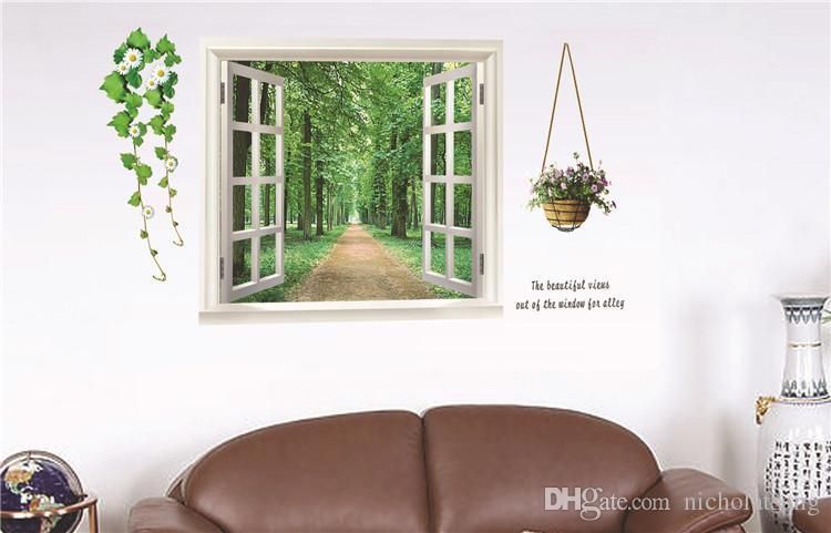 Kupit Optom Besplatnaya Dostavka Zelenyj Poddelnye Okna Derevo Cvety Risunok Alameda Steny Stikery Gostinaya 60 90 Sm Naklejka Na Stenu Ukrasheniya Doma Otqiansuning88 V Kategorii Naklejki Dlya Sten 809 Rub Na