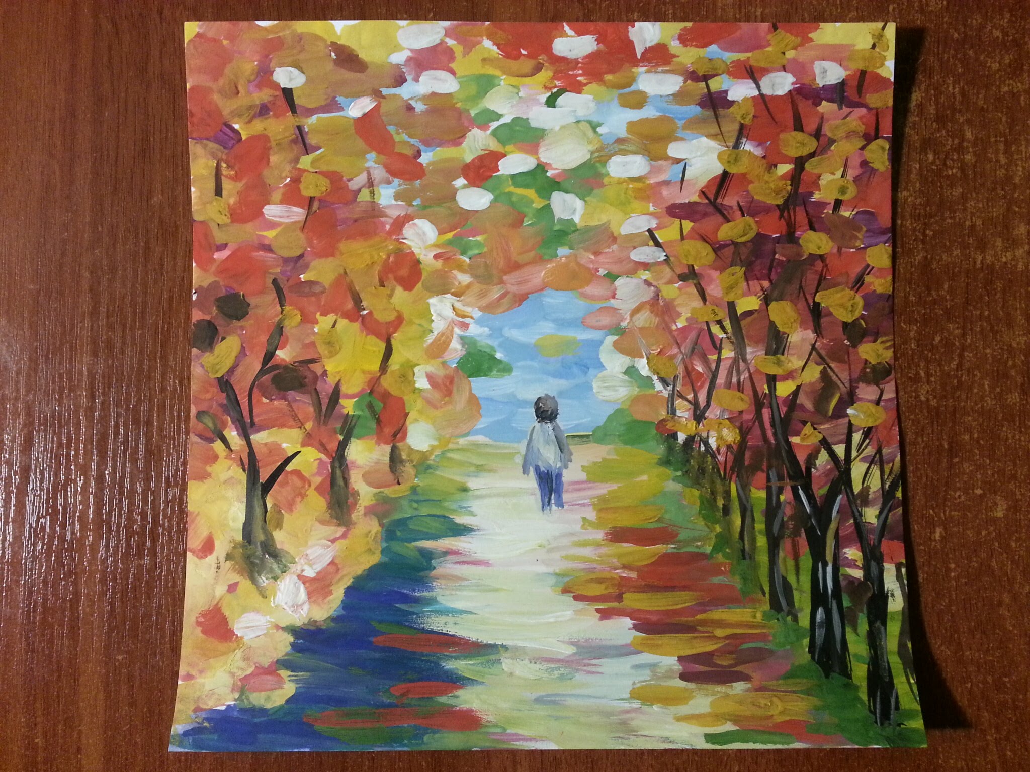 рисунок осени гуашью поэтапно