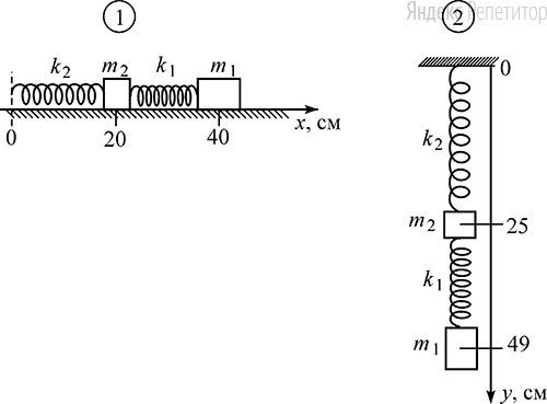 Na Risunke 1 Izobrazheny Dve Lyogkie Pruzhiny S Razlichnymi Koefficientami Zhyostkosti K 1 200 N M I K 2 500 N M Soedinyonnye S Gruzami Razlichnyh Mass Pruzhiny Ne Deformirovany Zatem Svobodnyj Levyj Konec