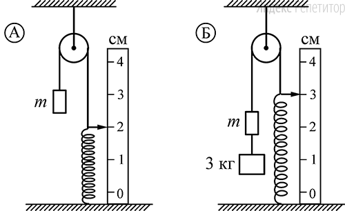 Sistema Sostoyashaya Iz Pruzhiny Gruza I Bloka Nahoditsya V Ravnovesii Sm Risunok A Posle Podveshivaniya K Gruzu M Drugogo Gruza Massoj 3 Kg Pruzhina Udlinilas I Sistema Prishla V Novoe Sostoyanie Ravnovesiya