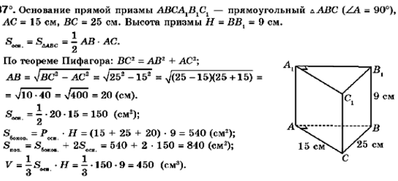 Osnovanie Pryamoj Prizmy Pryamougolnyj Treugolnik Odin Iz Katetov Kotorogo Raven 15 Sm A Gipotenuza 25 Sm Najdite Ploshad Poverhnosti Univer Soloby