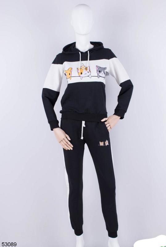 Stilnyj Chernyj Sportivnyj Kostyum Batnik S Risunkom Kapyushonom Kotami Cena 550 Grn 43180786 Kupit Po Dostupnoj Cene Ukraina Shafa