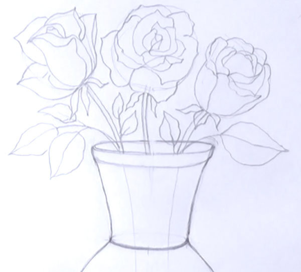 Kak Narisovat Buket Roz V Vaze Karandashom Poetapno