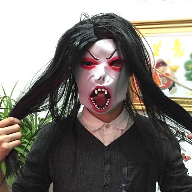 Strashnye Maski Na Hellouin Dekor Hellouin Kosplej Strashnaya Maska Iz Lateksa Volos Karnavalnyj Kostyum Komplekt Sadako Obida Rekvizit Vechernie Bar Domashnij Dekor Maski Dlya Vecherinki Aliekspress