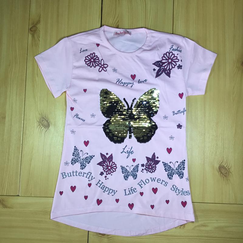 Modnaya Futbolka Babochka S Pajetkami Risunok Menyaet Cvet R 86 128let Cena 95 Grn Kupit V Chernigove Prom Ua Id 706235409