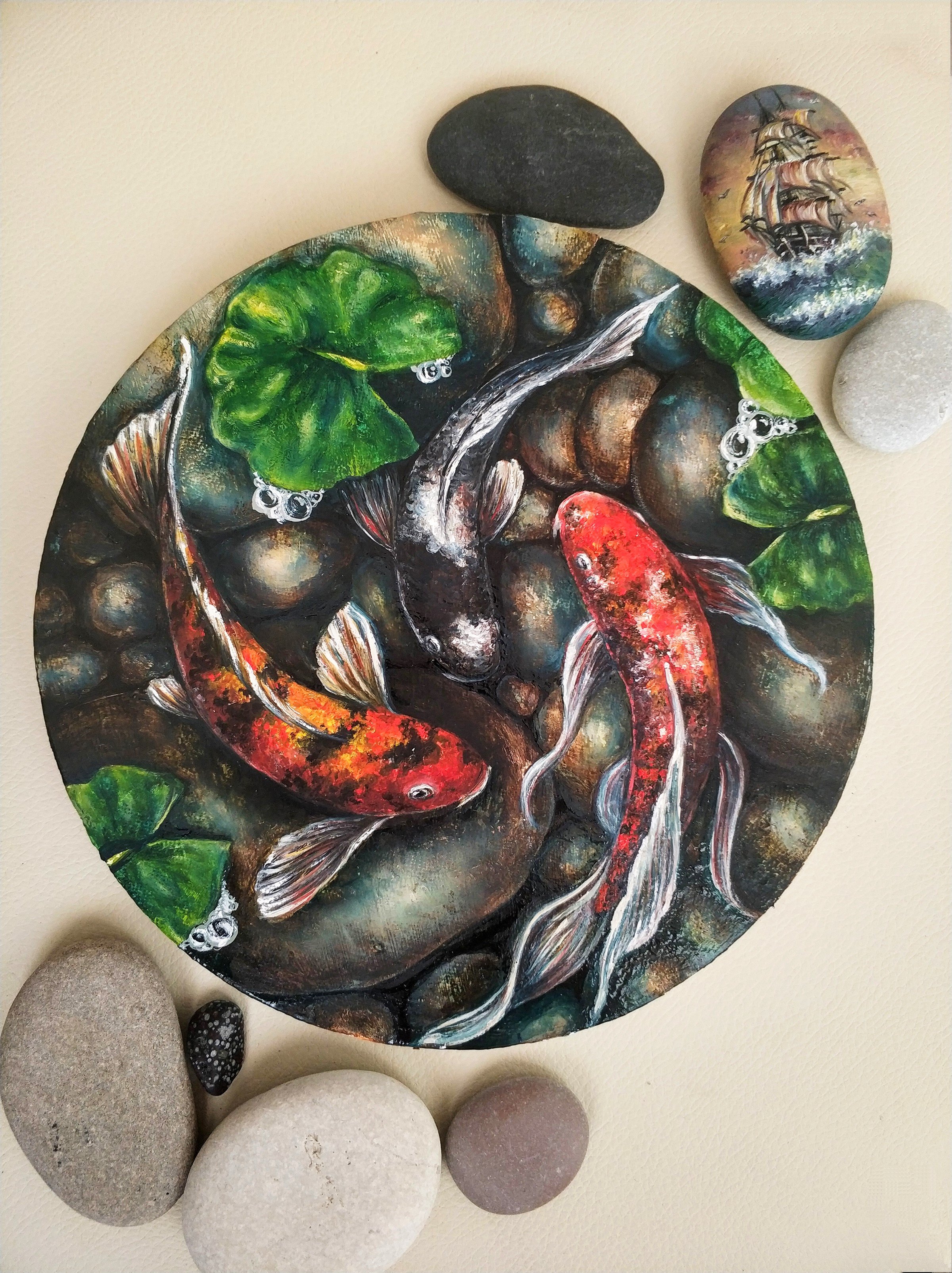 Yaponskie Karpy Koi Kartina Maslom Na Kruglom Holste Blokchejn Golos