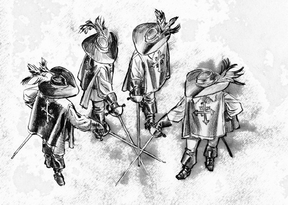 Risunki Karandashom Tri Mushketera Illyustracii Na Nizhnih Stupenkah Chetvero Mushketerov Zabavlyalis Veseloj Igroj